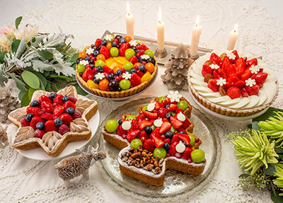 colorful cakes decorated with plentiful fruits.Welcome to our joyful cake shop symbolizing